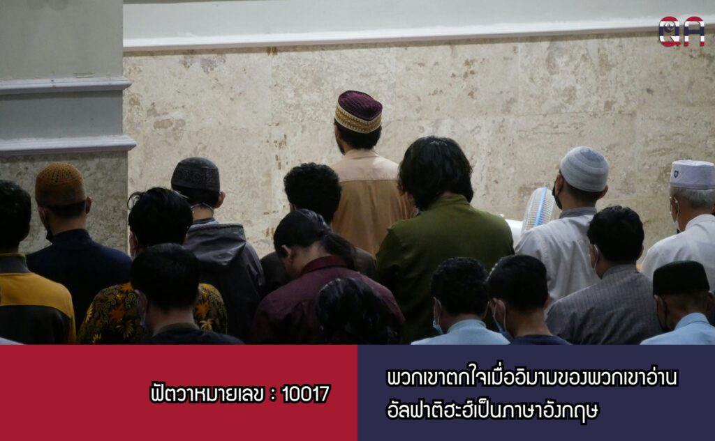ควรทำอย่างไร หากพี่น้องคนหนึ่งได้เสนอตัวเองเพื่อเป็นอิมามนำละหมาด แล้วเขาก็ได้เริ่มอ่านอัลฟาติฮะฮ์เป็นภาษาอังกฤษ ผู้ที่ละหมาดตามหลังเขาควรออกจากการละหมาด หรือควรละหมาดกับเขาต่อไป