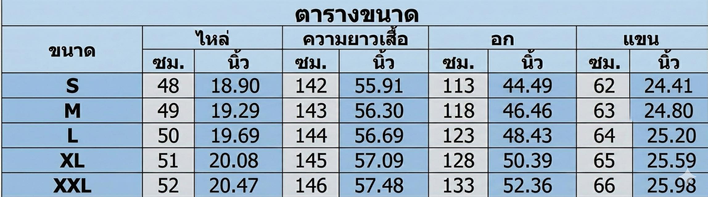 – มีตารางไซส์ให้เลือกแบบแม่นยำ
